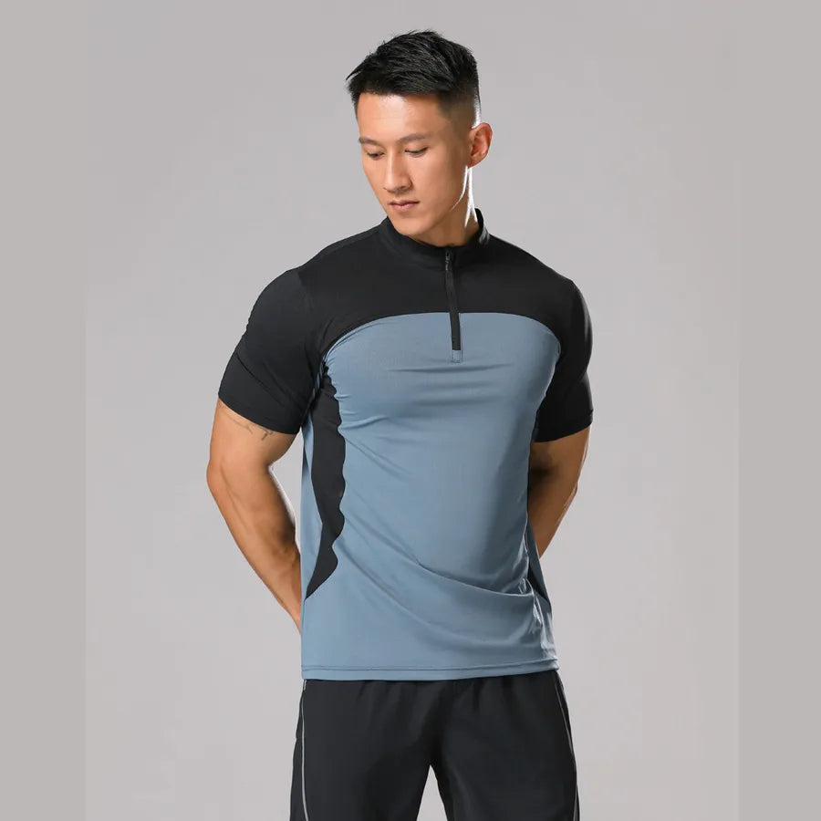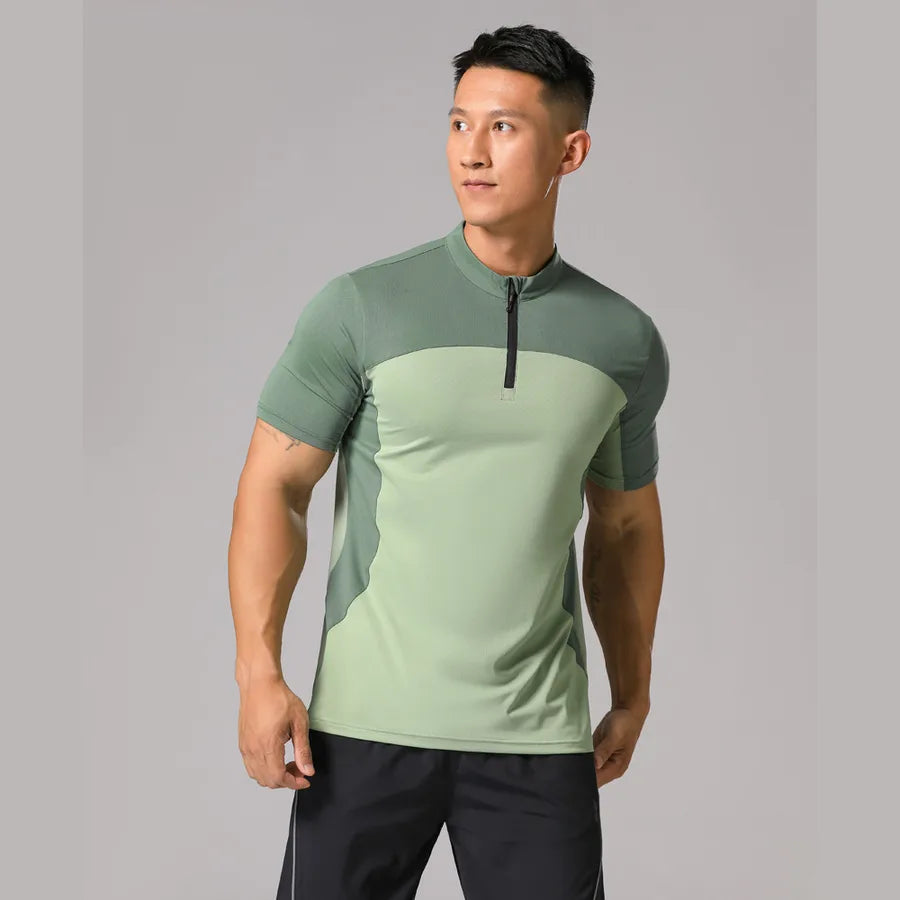 Men's Sports Color Block Chemical fiber blending Polyester Standing Collar Active Tops T-shirt