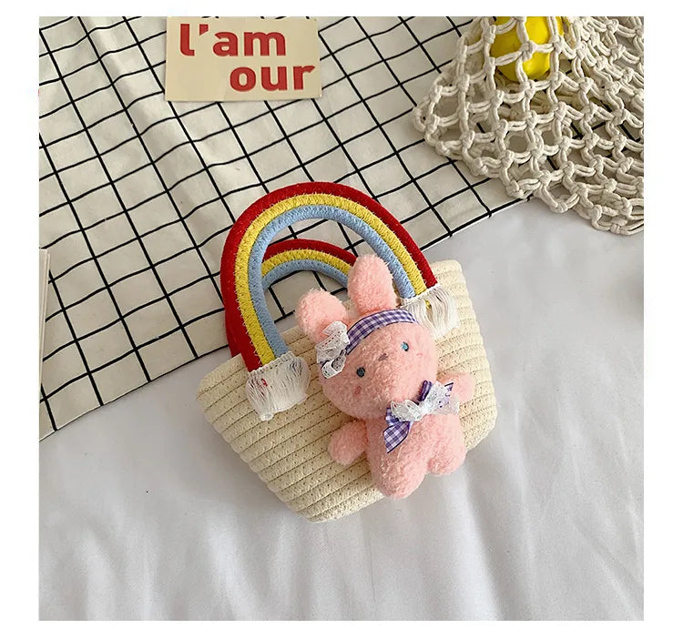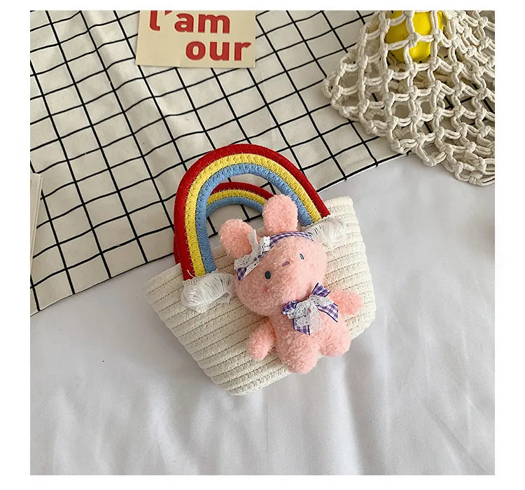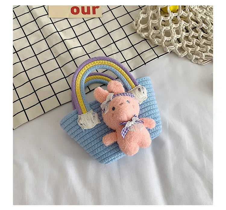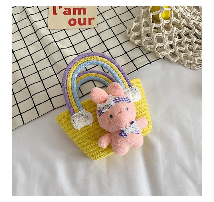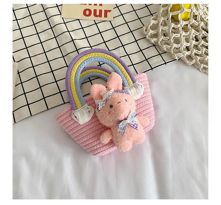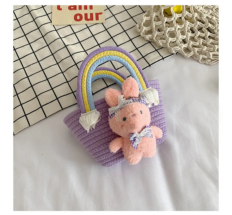 Women's Knit Animal Rainbow Cute Square Open Handbag