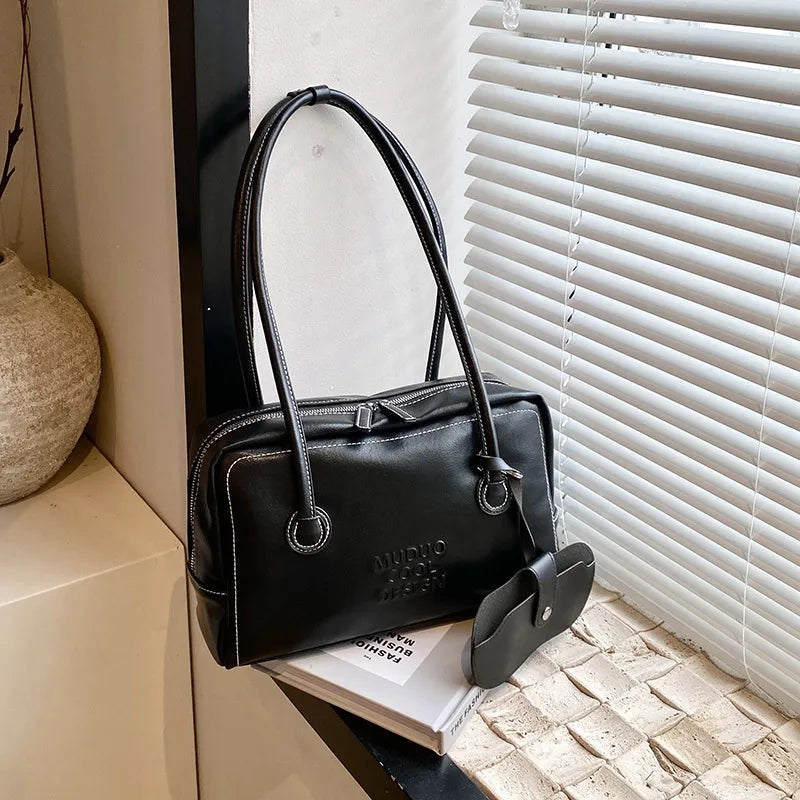 Women's Large PU Solid Color Elegant Basic Classic Style Sewing Thread Square Zipper Underarm Bag
