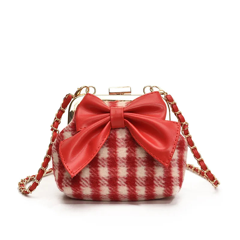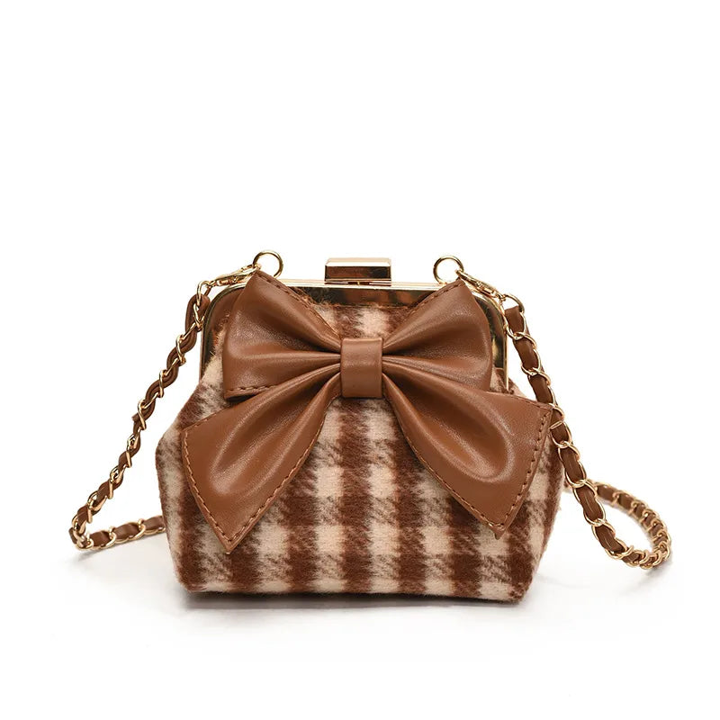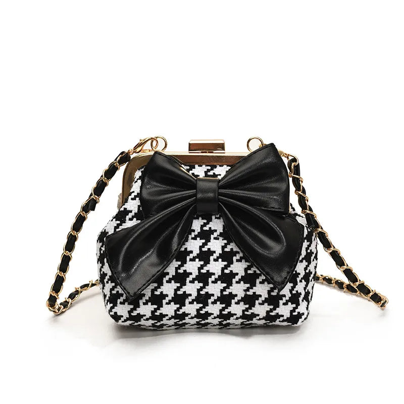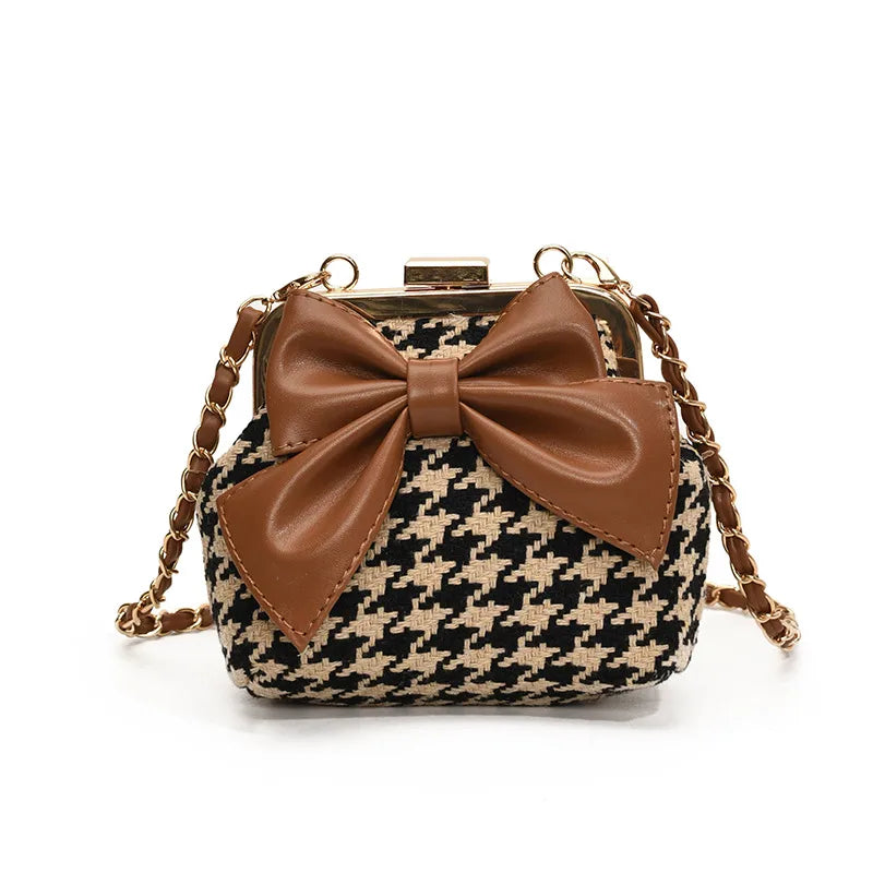 Women's Polyester Geometric Bow Knot Cute Sewing Thread Square Lock clasp Shoulder Bag