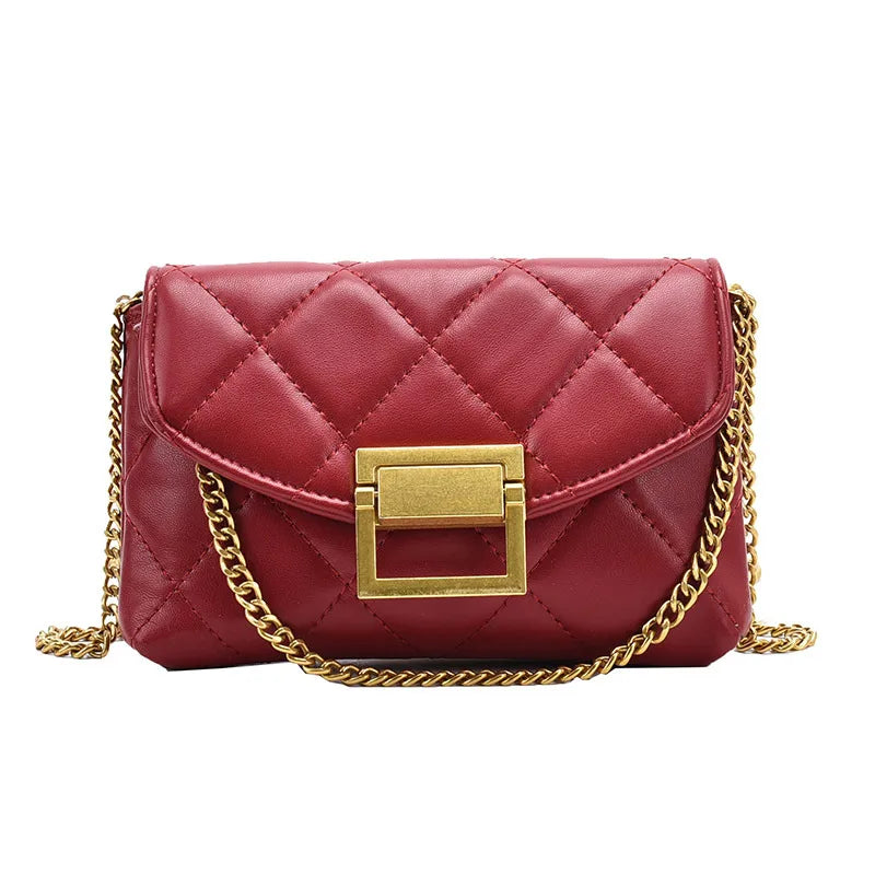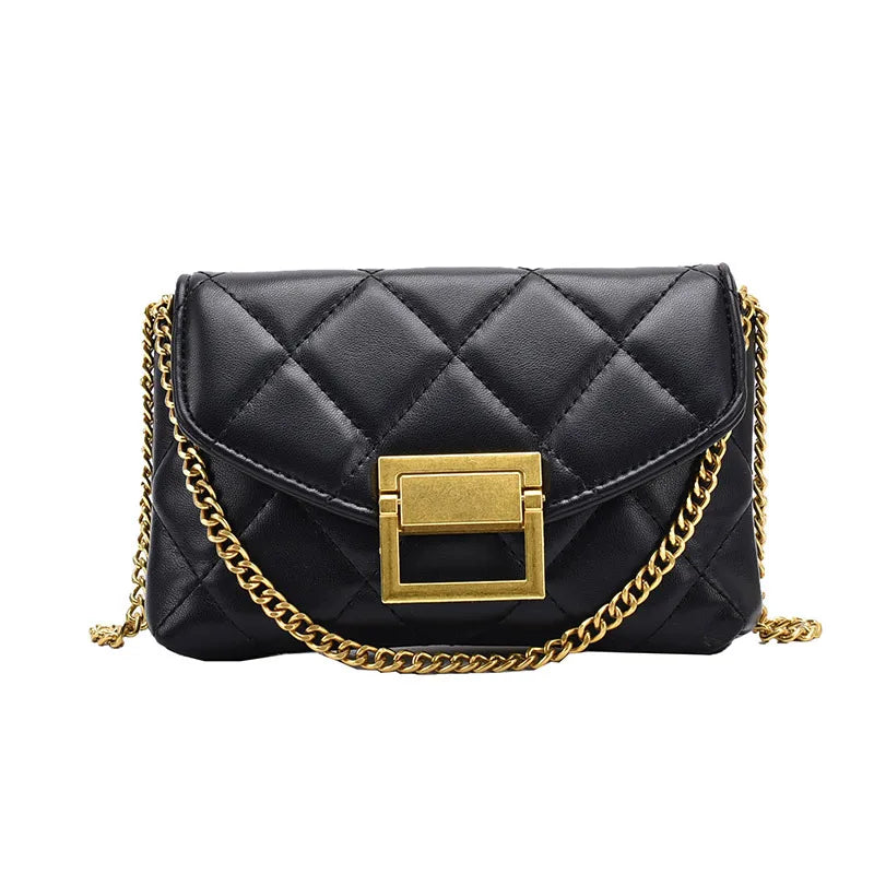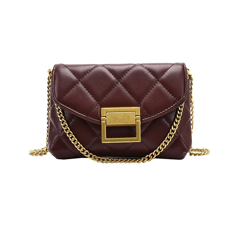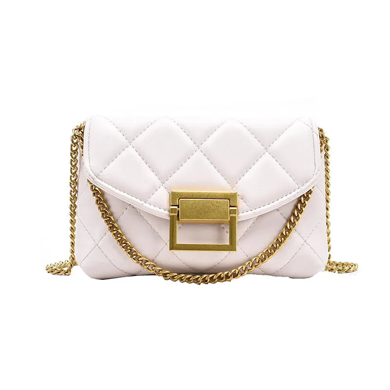 Women's Pu Leather Solid Color Lingge Classic Style Sewing Thread Square Lock clasp Crossbody Bag