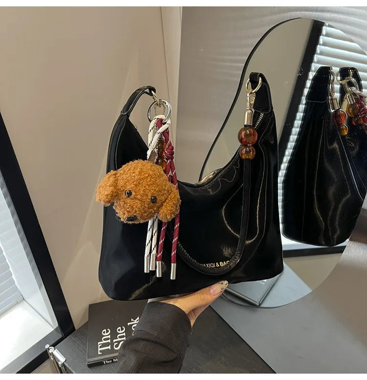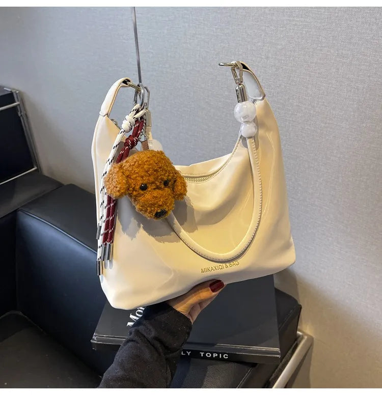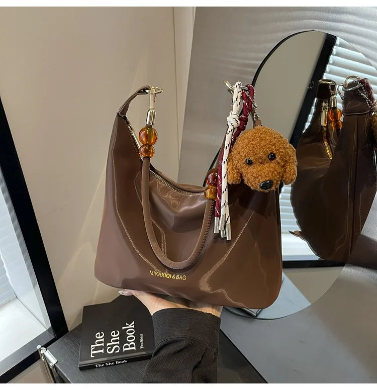 Women's Small PU Solid Color Elegant Streetwear Sewing Thread Dumpling Shape Zipper Shoulder Bag