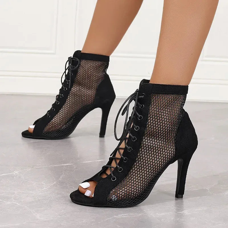 plus size fashion stiletto heel mesh hollow-out sexy sandals fashion lace-up cloth peep toe sandals